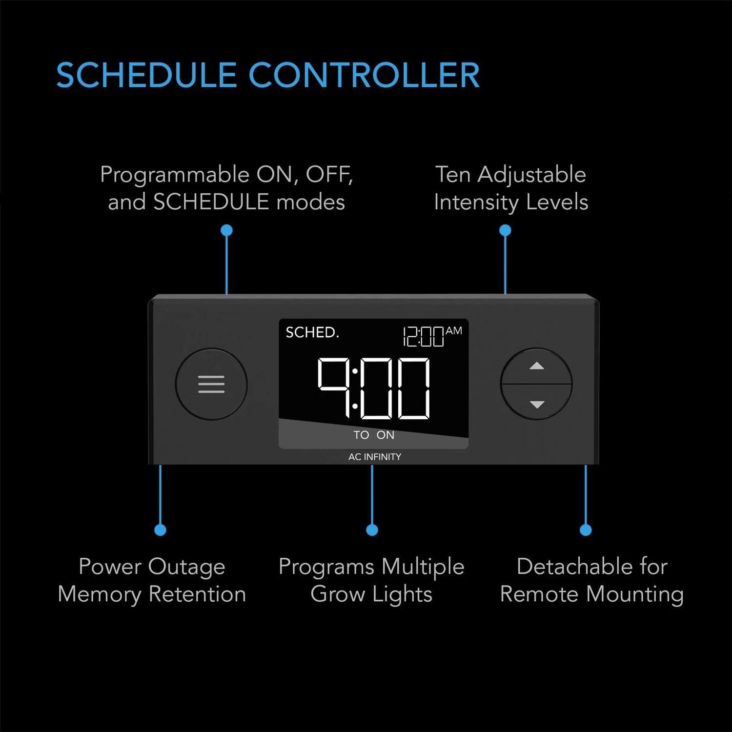 - Features a digital controller with ten light intensity levels and daily schedule programming.