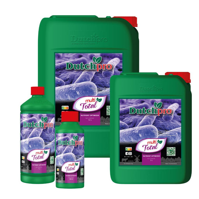 Multi Total aids the key processes necessary for turning organic material from dead plant matter into beneficial nutrients. It sparks off significant root growth by improving soil structure (in terms of water retention) and promotes nutrient producing bacterial life in the substrate. Incredibly, you’ll also find that Multi Total stimulates the cationic exchange of minerals and micronutrients and improves resistance against fungi and stress situations! Honestly, all this from only one product? You better believe it!