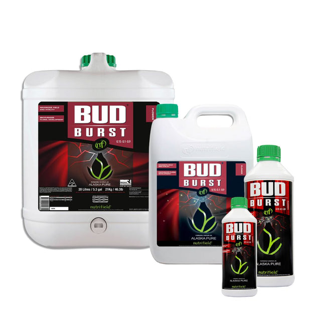 Nutrifield Bud Burst™ is truly a complete flowering enhancer that contains rich sources of Potassium, which is essential to water and nutrient movement in plants, photosynthesis, activating enzymes and strengthening cell walls. It is derived from Ascophyllum Nodosum which has the highest Potassium level of any kelp and is also full of trace elements, natural plant growth stimulants, and 17 amino acids. Bud Burst™ greatly improves brix levels, promotes more flowering sites with larger flowers, and induces greater essential oil production for increased yield potential.