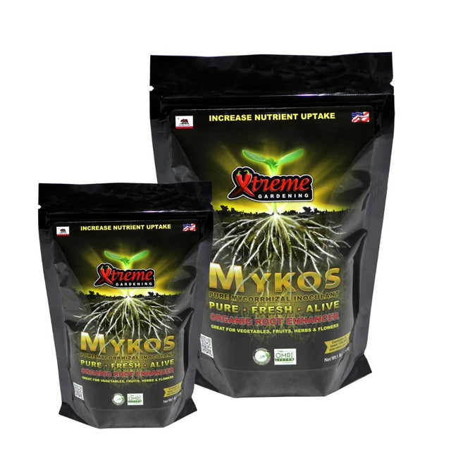 Mykos mycorrhizae is a natural and organic species of beneficial soil fungi that creates a “sponge-like” mass which collects and stores nutrients and water, increasing the uptake of both. This single species of arbuscular mycorrhizal fungi contains only Rhizophagus intraradices, formally known as Glomus intraradices. Mykos does not contain any other microbes such as trichoderma or ecto-mycorrhizae.