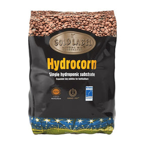 Gold Label Hydrocorn is the inert hydroponics substrate of choice for professionals. The 8-16 mm size provides stability and the unique uneven shape of the pebble is an ideal surface for roots and beneficial bacteria. The porous structure enables the pebble to uptake 15% of its weight in water and is suitable for DWC (Deep Water Culture), IWS Flood & Drain, Aeroponics and dripper irrigation systems. Also ideal for mixing with your current potting mix for added drainage while also providing more air pockets throughout the root zone.