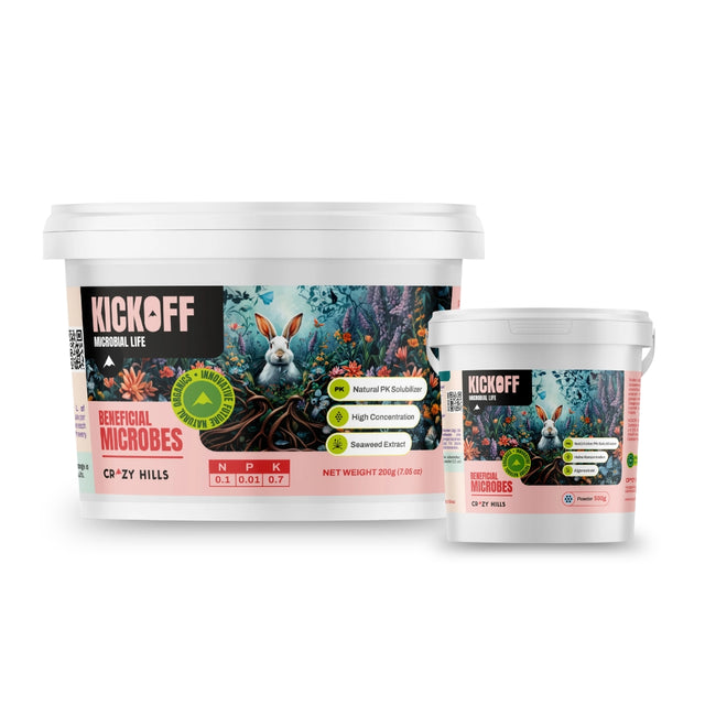 Crazy Hills KICKOFF is a concentrated blend of beneficial bacteria and fungi designed to transform your growing medium into living soil that fuels explosive root development and enhances overall plant health. Packed with powerful microbial allies, humic acids, and seaweed extract, KICKOFF helps plants establish strong, resilient roots from the very start — the foundation for bigger growth and better yields.