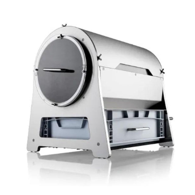 This compact, fully automated dry trimmer with a capacity of 3 kg/hour, is specifically designed for home growers, providing an effective solution for trimming at a smaller scale. The buds are placed in a stainless tumbler, gently rotated and trimmed using a food grade plastic cutting sheet. Leaves are collected in easily accessible drawer box located underneath the tumbler. Additionally, a removable transparent lid can be placed over the end of the tumbler to prevent bud spillage and allow for easy inspection of the trimming process.