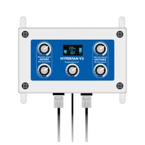 Improve environments and increase yields with the Hyperfan V2 Controller from Global Air Supplies. It will help control your Hyperfans to improve your grow environment easily and efficiently. Thermostatically control your intake and outtake fans.
