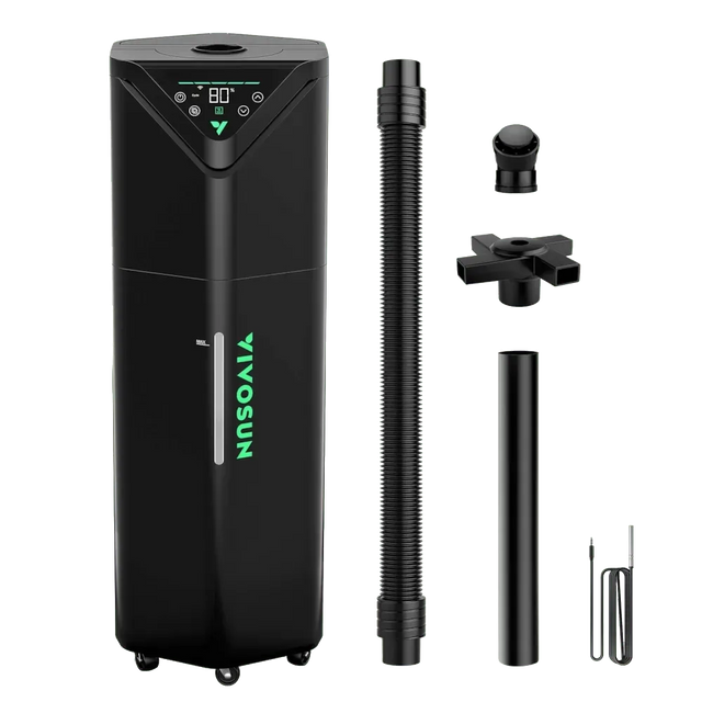 This model also integrates seamlessly with the VIVOSUN Smart Grow System (SGS), enabling fully automated climate control. The opaque tank prevents light from entering, helping to reduce algae growth, and a set of accessories is included for flexible installation.