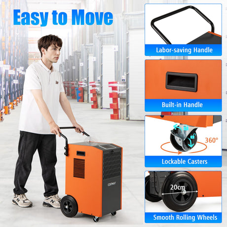 73 L/Day Industrial Dehumidifier with Drain Hose and Timer