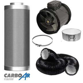 All our CarboAir filter kits are supplied with either 5 metre of Combi-ducting or 5m super silent ducting and 1 quick clips, 1 metu fast clamp of the size kit you require.