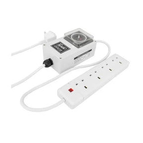 To set up, simply push the timer pins down to indicate “ON” periods, centrally position the ON/OFF switch onto “timer” mode, plug in ballasts to the 4-socket power bars and plug the contactor timer plug into a 13 Amp mains supply socket.