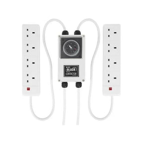 To set up, simply push the timer pins down to indicate “ON” periods, centrally position the ON/OFF switch onto “timer” mode, plug in ballasts to the 4-socket power bars and plug the contactor timer plug into a 13 Amp mains supply socket.