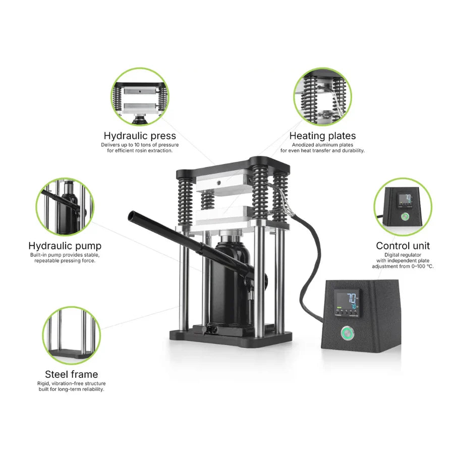 Whether producing small-batch premium rosin or scaling up regular solventless extraction workflows, the Rosin Press M combines precision control, durability and professional performance in one compact machine.