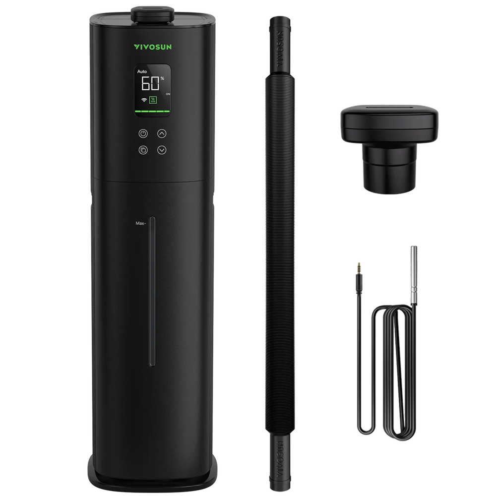 An external temperature and humidity probe provides real-time readings for precise environmental management. Its top-fill 9 litre tank, low-water alerts, and WiFi control make it simple to use and ideal for both horticulture and home environments.The VIVOSUN AeroStream H09 is a high-capacity intelligent humidifier designed for grow tents, greenhouses, and indoor gardens that require accurate and consistent humidity control. Using ultrasonic atomisation and an internal fan, it produces a fine, steady mist while operating quietly.