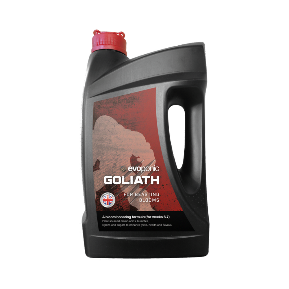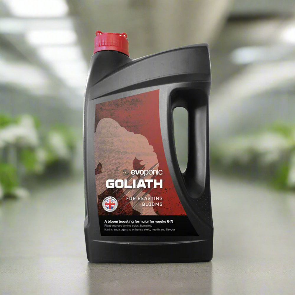 Evoponic Goliath is a powerful bloom enhancer formulated to dramatically increase flower size, density, and overall yield. Packed with essential nutrients, natural growth stimulants, and bioactive compounds, Goliath pushes plants to their full flowering potential, producing larger, heavier, and more resin-rich blooms.