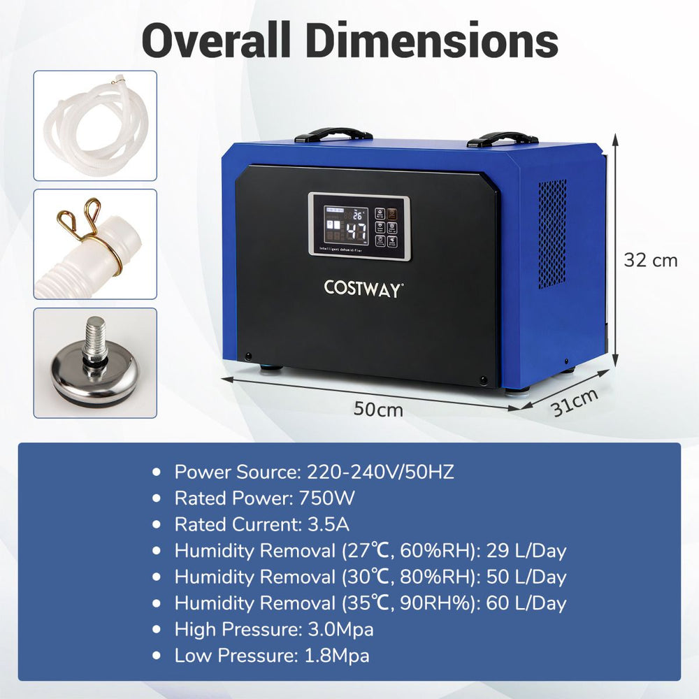 60L Dehumidifier with Drain Hose and 24H Timer