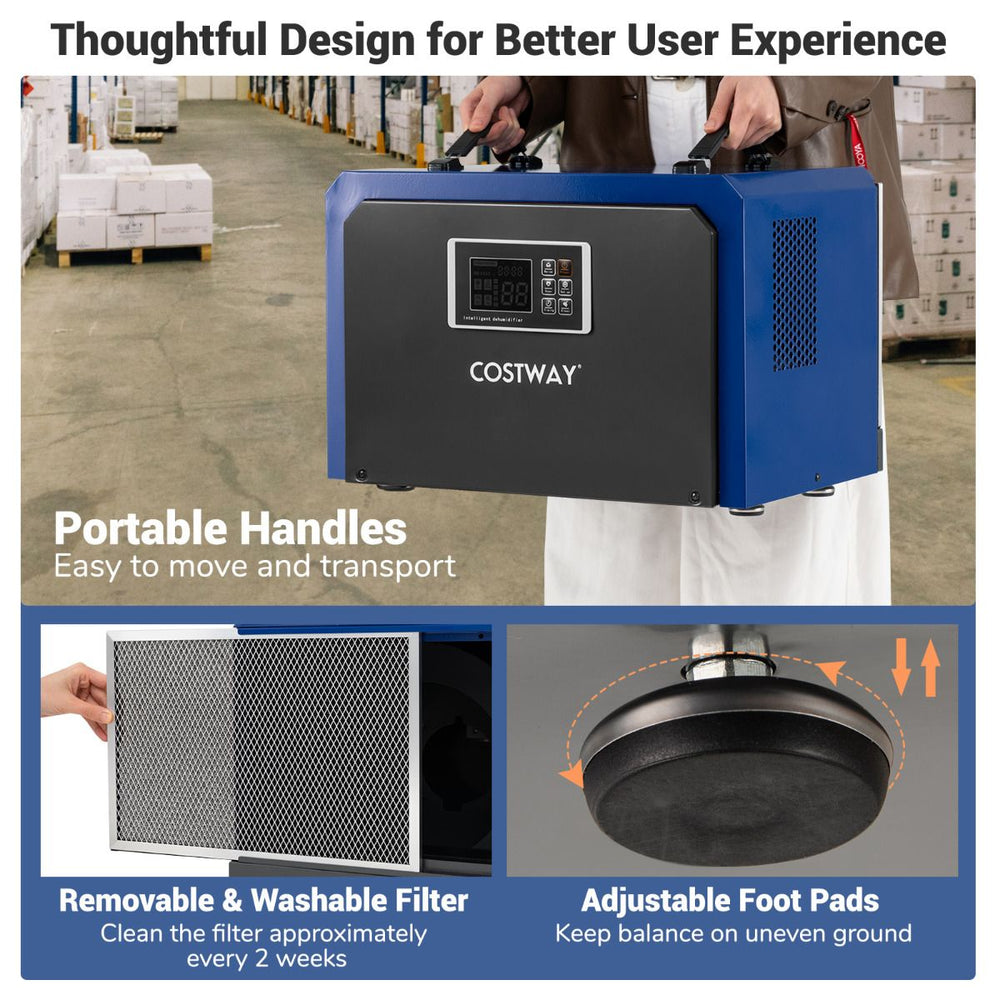 - User‑Friendly Control Panel – Easily adjust humidity targets from 10 % to 90 % using the smart control panel, and set the built‑in 24‑hour timer for scheduled operation.