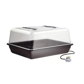 Fixed temperature heated propagators featuring a sealed heating unit - insulation beneath the carbon heating mat maintains selected compost temperature at 15-20°C under normal conditions (the temperature can be affected by ambient temperature). These utilise a long life 22 watt heater, which uses less power than an ordinary light bulb. Fitted plug included.